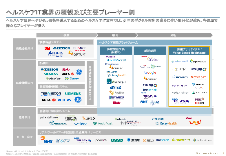 - 医療費削減に対する議論の高まりを背景として、米国でのValue-Based Healthcare(VBHC)の実装を支える多くの新興ヘルスケアIT企業が誕生しており、高成長を遂げている