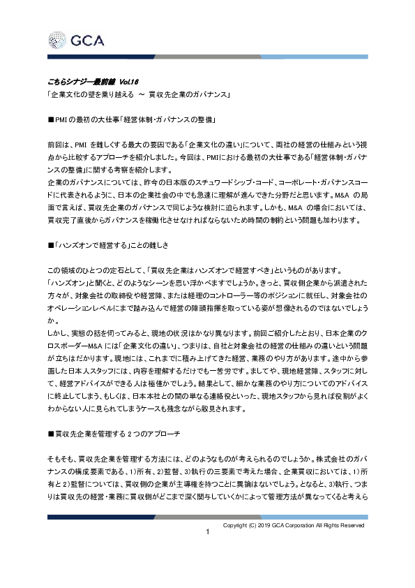Home インサイト M&Aナレッジ 企業文化の壁を乗り越える 買収先企業のガバナンス|こちらシナジー最前線 Vol.16 Home インサイト 企業文化の壁を乗り越える 買収先企業のガバナンス|こちらシナジー最前線 Vol.16 M&Aナレッジ 2018.07.31 PDFのレポートをご確認ください。文字が見えにくい場合、表示を拡大、またはPDFをダウンロードしてご参照ください。 資料のダウンロード 続きを見る